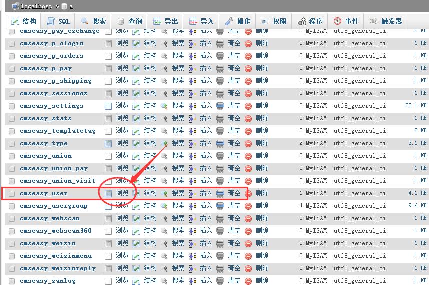 2.3 打開(kāi)數(shù)據(jù)庫(kù)后,找到user用戶表,點(diǎn)擊 [ 瀏覽 ],如圖: