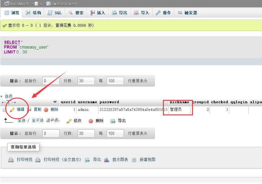 利用PHPMYSADMIN管理修改密碼