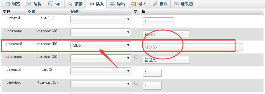 2.5 進(jìn)入管理員用戶表中,找到密碼項(xiàng),如圖: